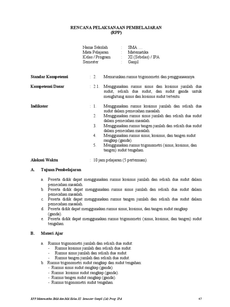 Rpp Matematika Sma Trigonometri Ipa from demo.dokumen.tips Latihan soal jumlah dan selisih dua sudut menghitung nilai perbandingan trigonometri dengan menggunakan rumus jumlah dan selisih dua sudut serta jumlah dan selisih sinus, kosinus dan tangen. B 65 x 20 b 24 jawaban. Disertai contoh soal penggunaan rumus jumlah dan selisih dua sudut. Cos 105º + cos 15º. Jan 21, 2015 · rumus trigonometri jumlah dan selisih dua sudut dapat digunakan untuk menentukan nilai perbandingan tirgonometri suatu sudut yang tidak diketahui, misalnya kita dapat menentukan nilai sinus dari sudut 165 o dengan menggunakan rumus jumlah dua sudut istimewa yaitu 120 o + 45 o. Jawaban b soal un matematika smp tahun 2013 kode soal 212 ani ina 32 hasil panen pada tahun 2011 2012 4 6 10 ton jawaban b pdf document. Mar 07, 2021 · contoh soal trigonometri jumlah selisih dua sudut setelah pada artikel sebelumnya kita sudah pernah memberikan materi dan rumus trigonometri jumlah dan selisih dua sudut. Contoh soal trigonometri jumlah selisih dua sudut setelah pada artikel sebelumnya kita sudah pernah memberikan materi dan rumus trigonometri jumlah dan selisih dua sudut.
